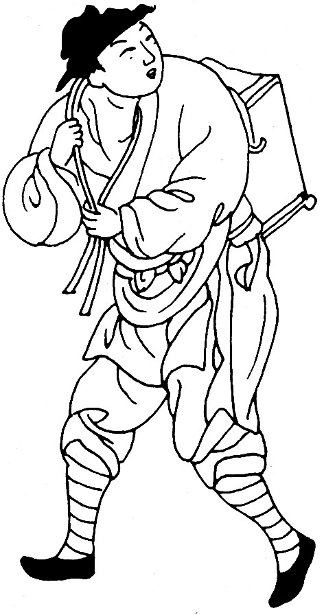 裹邪幅的男子 邪幅即“行滕”,为古代士兵护腿的一种,今谓之裹腿。其用绑腿布自足至膝,由上而下,由外向内缠绕,两端皆用绦带绑札。 |