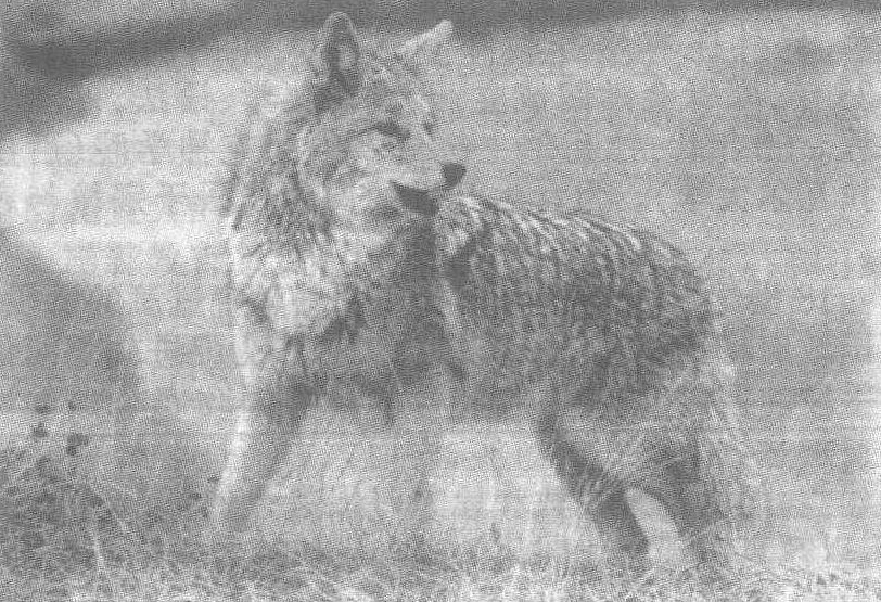 | 释义 | 郊狼Coyote又称小狼或草原狼。犬科,体型大小介于狼与狐之间。一身灰黄色长毛,杂有深褐色条纹。方头、尖嘴、两耳直竖,很像一条精瘦的德国牧羊犬,但永远向下拖着一条毛茸茸的尾巴。只产于北美,生活在艾树丛和针叶林地区里。一年成熟,每年2月交配,4月底或5月初产仔,一胎可产5只~7只。雌、雄成对生活,合作捕捉猎物,共同哺育幼狼。对狼叫、狗吠甚至汽车喇叭声都会嗥叫回应。主要捕食野兔,也吃昆虫和野果,人们错误认为郊狼伤害家畜。在加拿大,从不列颠哥伦比亚、育空地区、西北地区西部、艾伯塔、萨斯喀彻温中南部和马尼托巴,直到东部沿海地带都有郊狼出没。
