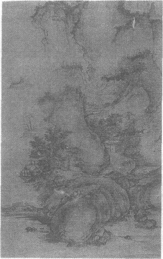 | 释义 | 郭熙山村图轴北宋。郭熙(见《郭熙早春图轴》条目)绘。绢本设色。纵109.8厘米,横54.2厘米。江苏省南京大学历史系藏。这是一幅布局深宏、描绘细腻的全景山水。图中雄峰大岭拔立江边,巍峨高耸,气势雄浑。巨壑宽谷迂回折转于峰峦之间。山间林木苍翠、枝繁叶茂,山庄、庭院、水榭、亭台掩映其中。一条山路行人点点,蜿蜒而上通入幽谷之中。山脚溪水潺潺,汇入宽阔浩渺的江中,江水伸向远方,在尽端山谷中飘散出来的浓雾中隐没。近处水滨泊着渔舟,几个渔夫正在卸船。老人们闲坐在大树之旁谈笑,儿童则在土坡上奔跑嬉闹。小小的山村弥漫着浓郁的生活气息。用笔精细,山石以云头皴出,墨色清淡、润泽。是郭熙的精心之作。