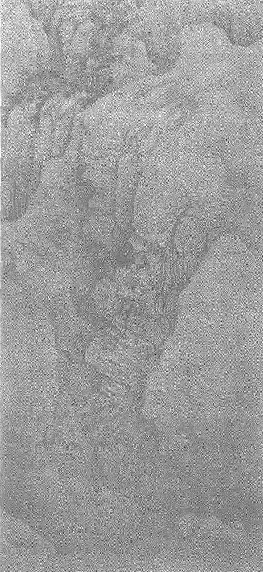 | 释义 | 郭熙幽谷图轴北宋。郭熙(见《郭熙早春图轴》条目)绘。绢本墨笔。纵167.7厘米,横53.6厘米。上海博物馆藏。图中层峦叠嶂,蜿蜒绵亘,托出远方巍峨高峻的主峰。白雪茫茫,气势雄浑。岗岭之上,层林密布,繁枝茂叶在大雪之中犹如凝烟笼雾。山体一侧断崖危立,山谷陡峭幽深。几株枯树,倚势而生,枝杈曲折,姿态各异。谷中清泉涓流,山下寒溪冷涩。此图取景高远,用笔凝重,墨色淡而润泽,意境深邃、清寒而萧索。无作者款识。画幅上钤有宋徽宗<宣和殿宝>印、明内府<纪察司印>半印。《宣和画谱》、《图画见闻志》、《图绘宝鉴》、《清河书画舫》、《墨缘汇观》等书著录。