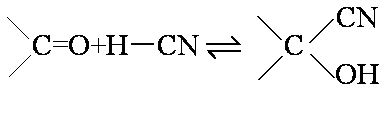 脂肪族甲基酮还可与氢氰酸和饱和亚硫酸氢钠溶液作用: