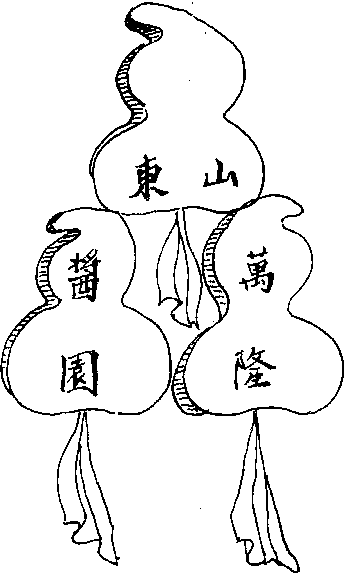 用板制成三个葫芦形,并连在一起,上边为红色,下边两个为绿色,示意店内出售产品。