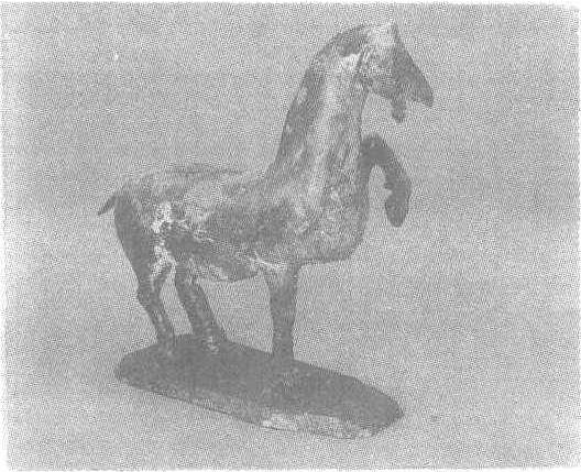 | 释义 | 酱黑釉陶马北魏。高39厘米,长27厘米。1965年山西省大同司马金龙墓出土。山西省大同市博物馆藏。司马金龙是北魏显宦。他的墓葬中出土了大量的陶俑和陶马。此为其中的一件。此马身躯健壮,四肢短而瘦劲,具有蒙古马的特征。它的左前肢弯曲扬起,口大张作嘶鸣状,与四足着地的陶马相比,这种形状更为生动,虽然不是奔马,但马的动态表现的十分完美,作品的风格趋向写实。