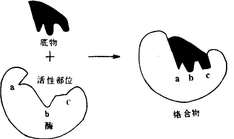图525 酶和底物结合的诱导契合学说 催化活力的19寡聚核苷酸。多数酶是结合蛋白质,除含有对热不稳定的酶蛋白部分外,还含有对热稳定的非蛋白质小分子物质,叫做酶的辅因子。酶蛋白和辅因子单独存在时无催化活性,二者结合成全酶后才具有活性。酶的辅因子可以是金属离子,也可以是小分子有机化合物,常见的有Mg2+、Ca2+、Cu+、Zn2+、Fe2+等金属离子和维生素的衍生物。酶蛋白部分主要决定酶的专一性,而辅因子部分主要决定酶促反应的类型。某一特定的辅因子,往往可以与不同的酶蛋白结合构成酶促反应类型相同而专一性不同的酶。如辅因子与酶蛋白结合较松,易将二者分开时,又将辅因子叫做辅酶。关于酶的作用方式,有一个重要的理论,就是酶底物络合物(中间产物)学说。该学说认为:酶(E)在催化某一反应时,首先与底物(S)可逆地结合成一种酶底物络合物ES。接着底物被激活,也即底物中的化学键被活化了,ES变成ES*(激活状态);然后ES*再分解生成产物P,并释放出自由的酶E。整个过程可表示为:E+S 。酶作为蛋白质,其分子要比大多数底物大得多。由此可以想见,在反应过程中酶与底物的接触只限于酶分子上的少数基团或较小的部位,许多研究也支持这种看法。酶分子表面的、与催化活性直接有关的、具特定三维结构的小区域叫做酶的活性部位(或活性中心)。这个区域能专一地结合底物并催化底物生成产物。构成活性部位的氨基酸残基,在肽链上可能相距甚远,甚至位于不同肽链上,但当酶蛋白形成特定空间结构时,通过肽链盘绕、折叠,彼此靠近,形成具有一定空间结构的区域。如果酶是结合蛋白质,其辅基或辅酶上的某一部分结构,往往也是活性部位组成部分。除活性部位外,对于维持酶的空间构象等必需的那些基团,也是保持酶的催化活性和稳定性所必要的。对所有这些残基的任何修饰或破坏,都会损伤或降低酶的活性。酶对底物的专一性很高,只能催化一定结构或与一些结构近似的化合物进行反应。因此有的学者认为,底物的外形必须与酶的活性部位吻合,就像锁和钥匙的关系一样,提出“锁钥学说”。后来发现某些酶的活性部位并不是僵硬的结构,又有人提出了“诱导契合”学说。认为:酶的活性部位的结构有一定的可塑性,当底物分子和酶接近时,在其诱导下,酶活性部位上的有关基团达到正确的排列和定向,使其构象发生了有利于与底物结合的变化,于是酶和底物互补契合,结合成络合物,促使底物发生反应。酶促反应速度可以用单位时间内底物的消耗量或产物的生成量来表示。许多因素可以影响酶促反应的速度,如酶浓度、底物浓度、温度、pH、激活剂、抑制剂等。酶不仅在生物的代谢活动中起重要的作用,而且在实际中得到广泛的应用。酶的催化效率高,专一性强,不发生副反应,作用条件又温和。所以,在生命科学的研究工作中常作为工具酶使用,如蛋白质和核酸的各种内切酶和外切酶;血液或组织液中酶活性的测定,已成为诊断疾病的重要辅助手段,如利用测血中转氨酶活性,协助诊断心肌梗塞和肝病。有些酶制剂还可作为药物使用,如常用胰酶制剂治疗消化不良。酶在工业上的应用,更是多方面的,如蛋白酶制剂用于皮革的脱毛、蚕丝的脱胶;淀粉酶制剂用于纺织品的脱淀粉浆;加酶洗涤剂用于去除蛋白类污物等。现在已有些酶经物理或化学方法处理制成不溶于水的固定化酶(固相酶),使其不但便于保存、反复使用、有利连续生产,而且稳定性也有所增加。酶enzymes生物体内产生的具有催化功能的蛋白质,又称生物催化剂。生物体内的化学反应几乎都是在酶催化下以很高的速度和明显的方向性进行的。酶和一般催化剂一样,在相对低的浓度下,仅能加快化学反应的速度,而不改变化学反应的平衡点,并在反应前后本身不发生变化。酶又具有不同于一般催化剂的特点: ❶酶有很高的催化效率。在常温常压和中性pH条件下,以分子比为基础,酶的催化效率比一般催化剂高107至1013倍。