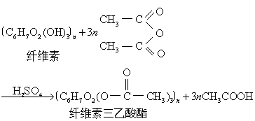 又称纤维素醋酸酯、纤维素乙酸酯。纤维素分子中有许多羟基,在硫酸催化下与乙酸酐反应生成酯。若每个葡萄糖单元上3个羟基均被酯化,称为纤维素三乙酸酯: