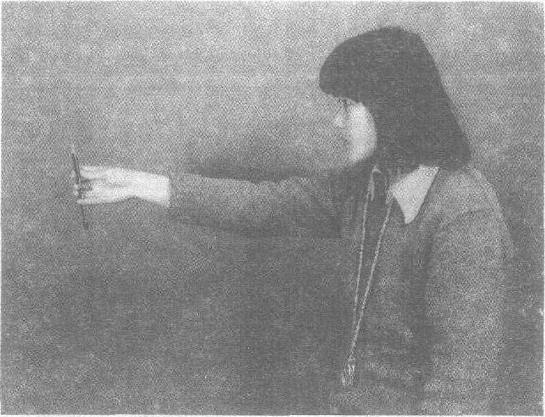 | 释义 | 量测Liangce与目测相对而言的,指用工具测量写生对象的比例、位置、线条斜度等以及检查所画的是否准确。也是检查目测是否准确的手段。亦称测量法。方法如图所示,以铅笔杆作为测量的“标尺杆”,小指和拇指在内,另外三指在外,中间三个指前节的指肚向内握笔,小指前节指背的关节处顶笔杆,拇指尖顶笔杆且可以依笔杆上下滑动自如。拇指如同标尺卡。笔头对准测量物的顶点,拇指尖移到测量物的底点,取得被测量物在笔上的缩比长度,拇指不动,将其缩比长度移动到所要与之取得比例关系的部位上,量取比例关系。再依取得的比例关系量测检查画面的比例关系。测量时,身体要直,拿笔的胳臂要伸直。量高,笔要垂直方向。量宽,笔要水平方向。一眼闭起,另一眼对准笔杆与测量物,以拇指移动,取得缩比比例。如若胳膊半弯曲测量,就不能确保在每次测量时笔杆与眼的距离都相等。测量的比例发生了错误,反而会扰乱目测比例的准确。作画不应依靠量测法,加强目测能力的锻炼是根本。故量测法只能作为初学者一时之拐棍。