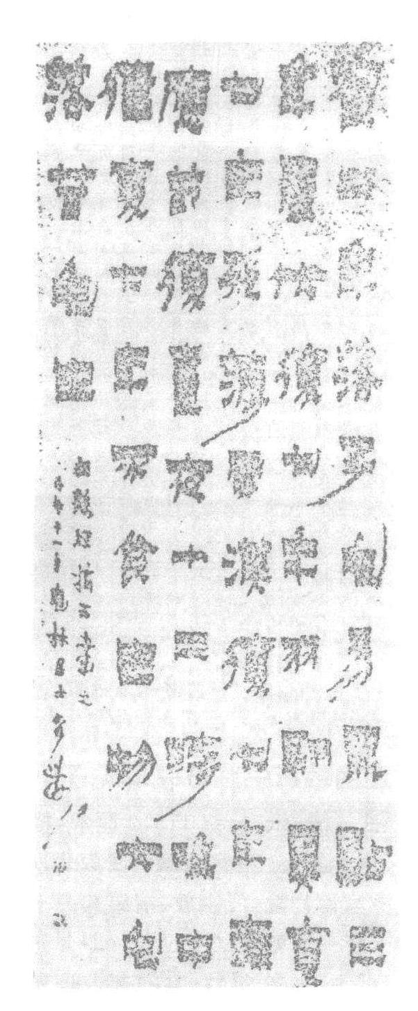 | 释义 | 金农漆书画像题记清。纸本。纵125.5厘米,横43.5厘米。北京故宫博物院藏。金农(见《金农漆书画梅诗轴》条目)书。此漆书共7行,100字,书于乾隆二十七年(即公元1762年),时金农76岁,是金农晚年的漆书代表作品。金农的隶书又称“漆书”,隶书中兼有楷书的体势,这对传统书法讲究“藏锋”、“中锋”用笔准则,是反其道而行之。他侧锋运笔,横粗竖细,有金石韻味。
