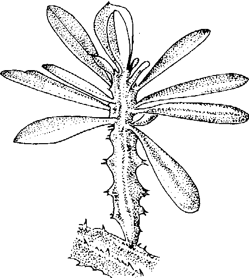 | 释义 | 金刚繤oleander cactusEuphorbia antiquo-rum,别名火殃簕、霸王鞭。大戟科大戟属灌木。染色体数2n = 60。高达1m,有白色乳汁。茎粗壮,小枝肉质,扁平或有3~6翅状棱,具托叶刺;叶对生,倒卵形至匙形;杯状花序每3枚簇生或单生,总花梗短而粗,生于枝翅凹陷处;蒴果。产印度,中国西南及广东、福建等地有栽培。喜温暖气候和阳光充足;耐干旱,忌水湿。扦插繁殖。5~6月间剪取嫩茎作插穗,剪口涂以草木灰,干后插于沙床中。40~50天后即可生根。主要病虫害有介壳虫等。金刚纂姿态强劲,四季常青,多作盆栽观赏;南方暖地也可用于点缀假山石,或作篱垣。茎可入药。