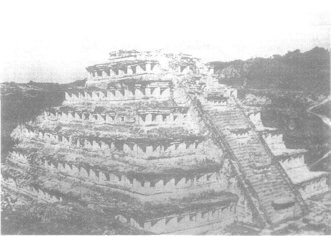 | 释义 | 金字塔庙古代中美洲部落建造的祭祀各自神灵的庙宇,出现于古代中美洲文化的形成时期(公元前1500年—公元100年),其典型形式是低矮的金字塔形土筑石砌的台座,有巨大的台阶可上达顶部的石砌小神庙。墨西哥的特奥帝瓦坎宗教中心是已知的玛雅人建造的最大的金字塔庙建筑群,始建于公元前3世纪。沿一条2公里长的主轴,布置有月亮金字塔庙、太阳金字塔庙、“城堡”金字塔庙等众多建筑。其中最大的金字塔庙高66m,底边长宽约213m,前面有公共集会、表演宗教舞蹈和娱乐的宽阔广场,进行祭祀时,祭司沿宽大的台阶而上,微小的人影给人一种与天相近的神秘感,以制造宗教崇拜的气氛。金字塔庙的层层退台上整齐地雕饰以羽毛蛇和雨神的头像,反映出当时精湛的石雕技艺。