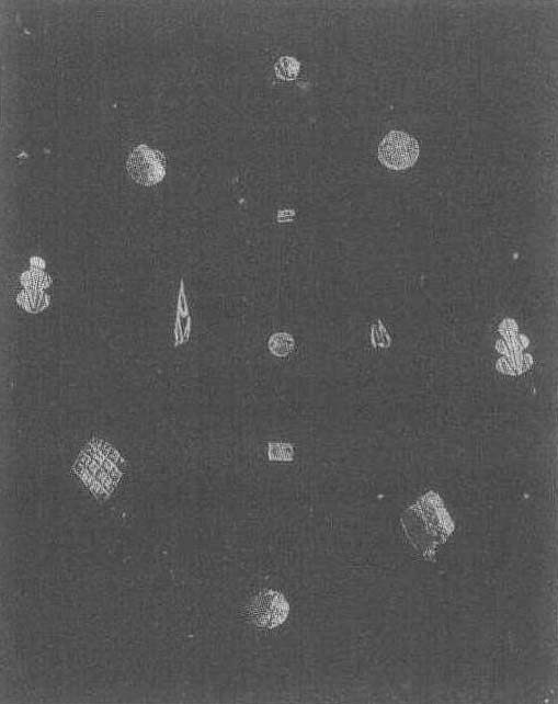 | 释义 | 金箔饰件汉。最大直径4厘米,最小直径0.5厘米。1962年新疆维吾尔自治区昭苏县夏台第三、五、八号墓葬乌孙人遗址出土。新疆维吾尔自治区博物馆藏。金箔饰件是中国民间传统装饰艺术的一种,早在汉、唐时代,民间妇女即用金银箔和彩帛剪成方胜花鸟贴在鬓角为饰。金箔是将金块碾压成薄片后,剪制而成。此金箔饰件共有十四件,其中菱形饰两件、树叶形饰两片,分别用碾压法碾压出凸起的菱格和叶脉。圆形饰三片,圆泡两个,是附在铜质器物上的,上面绿色铜锈清晰可见。三叶纹饰两片,长方形饰二片,在四角或两边均有小孔,是衣着或器物上的装饰品。这些金箔饰件碾压极薄,反映了当时较高的工艺水平。