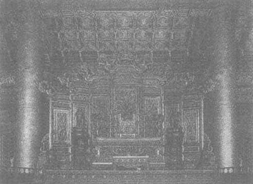 明。宽约170厘米,深约70厘米。北京故宫博物院藏。此椅又称“髹金雕龙大椅”,是明清两代皇帝的御座。“圈椅式”椅背,须弥座式椅腿,椅背四根圆柱上雕数条龙,背板、座板雕着繁缛的花纹,并于表面髹金漆,显得富丽堂皇,气势阔大。精湛的技艺,独特的造型均称得上一流水平,是木器家具中的精品。