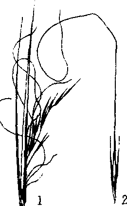 针茅 1.花序 2. 小穗 针茅多年生草本,高40—80厘米。叶片纵卷成线性。圆锥花序狭窄,小穗草黄色,花果期6—8月。产阿勒泰、阜康、乌鲁木齐、石河子、塔城、霍城、伊犁、哈密、鄯善、温宿、策勒等地。抽穗前和落果后为优良牧草。颖果成熟后具尖锐的基盘,对羊体有害。 |
