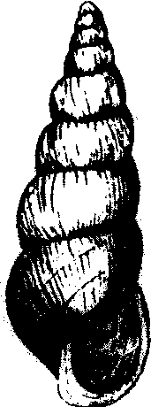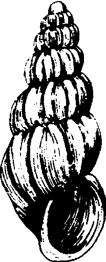 141 光钉螺 钉螺Oncome lania hupensis无脊椎动物,软体动物门,腹足纲,觿螺科。贝壳较小,成体高7~10毫米,宽3~4毫米,尖圆锥形,有6~9个螺层。壳质厚,较坚硬,壳面光滑或有粗的或细弱的纵肋,底螺层较膨大。壳面淡灰色,壳口卵圆形,具有黑色框边,外唇背侧有1条粗隆起的唇嵴。生活在我国安徽、江苏、上海、浙江、江西、湖南、湖北、广东、广西等地区杂草丛生的河湖、沟渠、池塘、稻田等处。具有水陆两栖习性,幼螺喜生活在水中,成螺喜生活在陆地潮湿的草丛下;冬季水下钉螺少,春夏季水下钉螺较多。幼螺在条件良好情况下,2个多月即可发育成熟。是日本血吸虫(Schistosoma japonicum)唯一中间宿主,为了消灭血吸虫病,应在4月份进行消灭钉螺,5~7月份药杀螺卵,6月份以后加强杀灭幼螺。