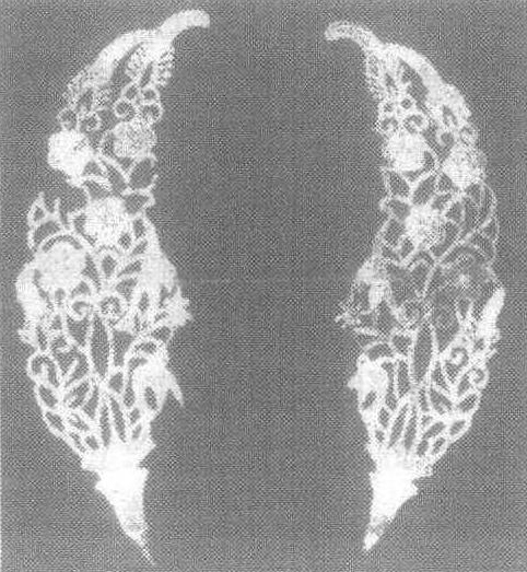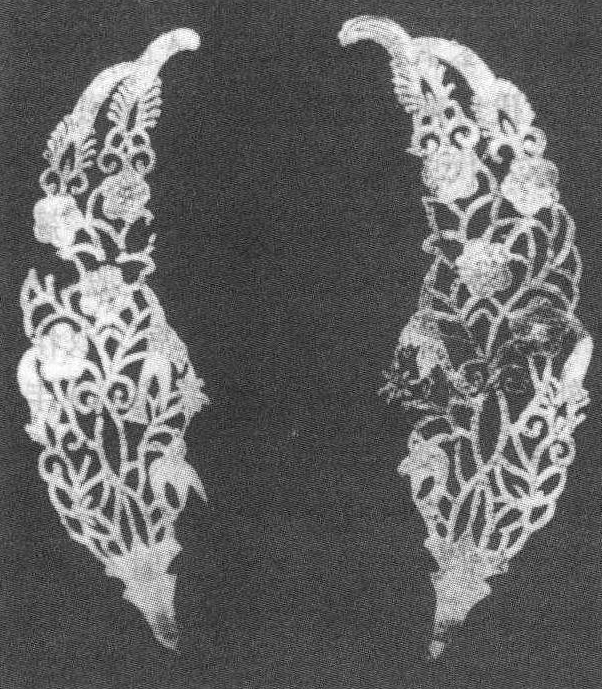 五代银钗 钗旧时满族妇女首饰。其最简单的形制,是将一根金属丝从中部弯曲,使齐端而平行。分“钗首”与“梃”两部分,钗首用金、银作花或镂花、或以珠宝翠玉镶嵌其上,因其形制不同,有玉燕钗、凤钗、雀钗、金花钗、珠钗、小铃钗等。梃为双股以上锥体,与钗首相连插入发际。关东其他各族妇女亦有戴饰者。 钗首饰。清代满族妇女常于发髻上插戴。贵重金属为质,由“钗首”与“梃”两部组成。钗首以珠、翠诸杂宝制成精巧纹饰图案;梃为双股以上锥体,与钗首相连,插入发中。 |