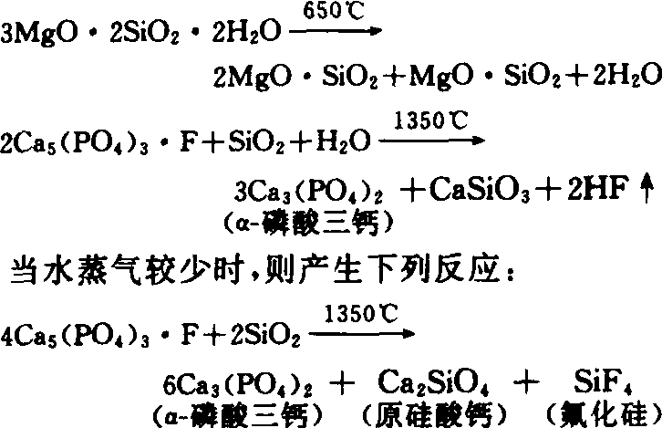 然后,将熔融物进行水淬骤冷,再经干燥、粉碎、磨细而成。 理化性质 钙镁磷肥主要由无定型磷酸钙镁盐、高温型磷酸钙盐[α-Ca3(PO4)2]、硅酸钙(CaSiO3或Ca2SiO4)和硅酸镁(MgSiO3或Mg2SiO4)以及少量铁、铝等盐类组成的共熔体。含磷(P2O5)12%~20%,含镁(MgO)10%~15%,含钙(CaO)25%~30%,硅(SiO2)40%。中国化学工业部规定的钙镁磷肥成品质量标准见表。 钙镁磷肥质量指标(%)