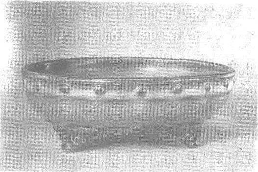 | 释义 | 钧窑天蓝釉鼓钉瓷洗北宋。高8.5厘米,口径22.8厘米。北京故宫博物院藏。鼓钉洗是钧窑常见的一种盛水洗笔器形。此洗广口、折沿、弧形浅腹,3云头足。因口沿及下部均排列一周鼓钉纹,故得名鼓钉洗。此器施乳浊釉,釉层较厚,里外均呈天蓝色,近底处有玫瑰色闪烁。洗心釉面有一条条曲折线,是钧釉特有的“蚯蚓走泥纹”。器底刻有标号“二”,表明此器是为宫廷烧造的。钧窑见“钧窑玫瑰紫釉瓷盆托”条目。