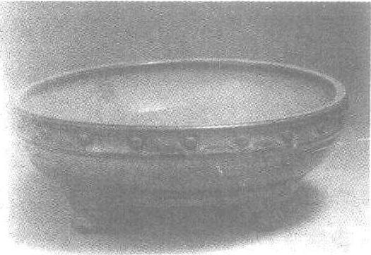 | 释义 | 钧窑玫瑰紫釉鼓钉纹瓷洗北宋。高9厘米,口径24.3厘米。上海博物馆藏。钧窑位于河南省禹县,始烧于唐,极盛于宋。北方一些窑场群起仿效,形成钧窑窑系。钧窑的主要特色是使用变幻无穷的窑变色釉。它首次使用氧化铜做呈色剂,在还原焰的气氛中烧成了红色釉,为元代以后铜红釉的发展奠定了基础。此洗折沿,弧形腹,下承以三云头足,口沿及近底处有环列的鼓钉纹。器内饰天蓝色釉,色调明朗;外壁为玫瑰紫色,一抹淡蓝与之交融,产生出梦幻般的浪漫效果。