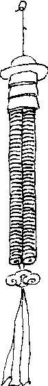 将两串用铜制成的铜钱串在一起,下缀一块红布,示意此铺为钱铺。