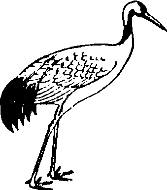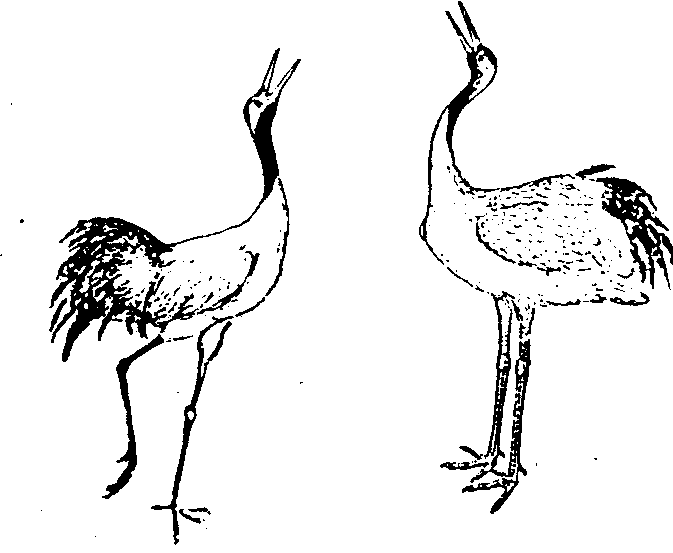 图347 丹顶鹤 丹顶鹤Grus japonensis鹤科。为世界著名的珍贵涉禽。体长在1.2米以上。体羽主要为白色,喉、颊和颈部暗褐色。尾羽极短,但嘴、颈和腿都很长。头顶皮肤裸露,呈朱红色,因而得名。但幼时头顶不红。三级飞羽黑色长而下垂,走动和休息时,覆于短尾羽上面,常被误认是黑色尾羽。飞翔力强。雌雄的外形不易区别,雄鸟鸣声洪亮,用淡灰绿色的长嘴直伸天空,并高举翅膀跳跃。丹顶鹤寿命可长达五六十年,民间曾长期误传为“仙人”的坐骑,故俗称“仙鹤”。因极为珍稀而被列为国家一级保护动物,可供观赏。鹤为世界著名文化鸟类,深受世界各国人民的喜爱。我国自古即将鹤视为吉祥、长寿的象征,不仅宫廷苑囿和士大夫的庭院中常有驯鹤、养鹤的记载。甚至清代一品文官的补服上,也以仙鹤作为最高品级图案来显示高雅华贵。我国古今的诗歌词曲、绘画刺绣、文艺雕塑和音乐舞蹈等,也多以鹤类为题材,足见爱鹤之深。宋诗人林逋(967~1028)无妻无子,隐居在西湖孤山,靠养鹤种梅以自娱。当林逋外出游西湖时,每有客人来访,家僮即开笼放鹤,主人远望饲鹤飞上天空,即知有客,遂棹舟返家。在与客人酌酒吟诗时,鹤也飞鸣起舞,为主客助兴。宋代文人张天骥,养鹤两只,并在今江苏徐州云龙山顶建盖一座“放鹤亭”。每日清晨登亭放鹤,傍晚在亭招鹤,曾作《招鹤歌》。由此可见,我国人民自古便以爱鹤、护鹤为乐事。现今民间养鹤者虽不多见,但国家笼养鹤数和种类之多,仍居世界首位。尤其是国家对鹤类自然保护区的建立和对鹤类保护措施的制定,近年,鹤类种群数量已有显著增加。