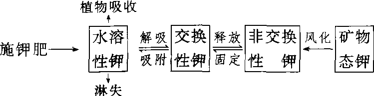 土壤中各种形态的钾之间互相转化时所保持的动态平衡。可图示如下。