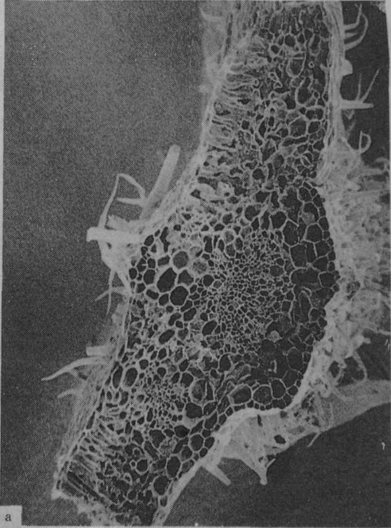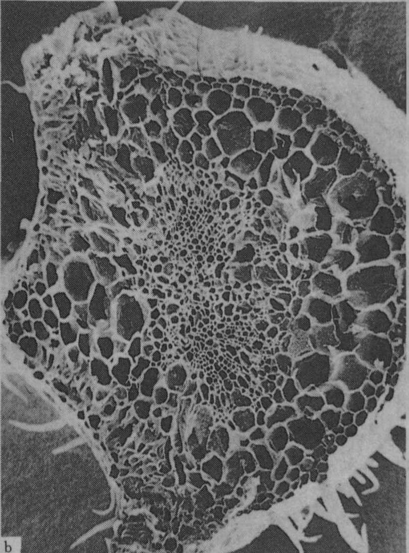 图5 番茄叶柄横切面在不同钾水平处理下维管束的发育情况 a. K0(盆栽,不施钾,土壤含速效钾25mg/kg); b. K1(每5克土中施K2O 3.0g)