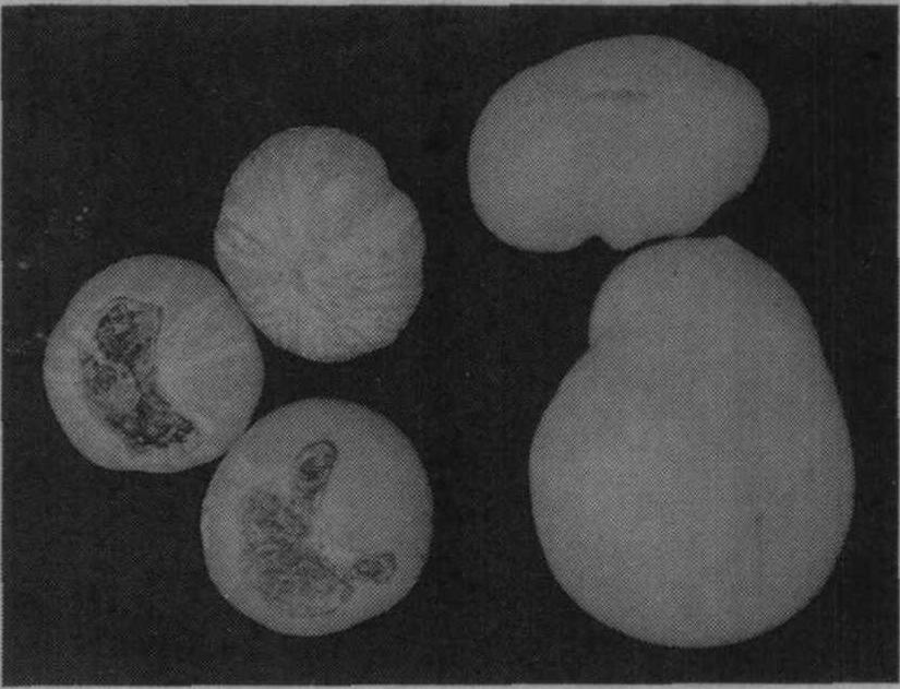 图7 不同钾水平处理的番茄果实 左:K0的病态果实;右:K1果实 抗冰冻 冰冻对作物的损伤可能是由于细胞膜结构遭到破坏,引起溶质渗漏,甚至使代谢的区域化(compartmentation)受到影响。在土壤冻结时就影响植物水分及养分的吸收,根系发育差的植物也可能因土壤冻结而受到机械的损伤。钾营养充分且养分平衡的作物在温度逐渐降低的过程中,光合作用速率虽然也逐渐降低,但因低温下生长较慢,故积累同化物较多,细胞液内含糖量较高,组织内束缚水/自由水的比值增高,不易结冰,且膜结构亦较稳定。同时根系发育良好,活力亦较强,在低温下仍能从土壤中吸收水分和养分;在土壤冻结时不易受到机械损伤,故抗冰冻能力较强。 抗倒伏 钾营养良好的植物厚壁组织增厚;合成细胞壁组成物质较多,细胞壁较厚;表皮上角质层发达;禾谷类作物硅化程度增高,组织坚韧,茎秆强健,不易倒伏。 总之,充分的钾营养及养分平衡,促进植物蛋白质代谢及碳水化合物代谢,使植物生长强健,增强抗病能力及对不良气候条件的抵抗力,这对提高作物品质和产量都是有利的。 |