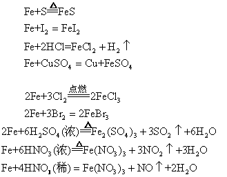 +3价的铁在酸性介质中表现出较强的氧化性,可转化为+2价的铁: 2FeCl3+2KI=2FeCl2+I2+2KCl 此外,+3价的铁还可被氧化成+6价,形成高铁酸盐: