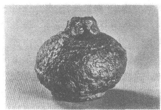 | 释义 | 铁权隋。权,秤锤。通高4.8厘米,底径4.5厘米。重693.1克。1930年河北省易县燕下都老姥台出土。北京中国历史博物馆藏。铁权通体有剥蚀,呈圆台形,上有圆形钮,钮孔被积锈堵塞。此权为隋代一斤权,重约是新莽时的三倍。