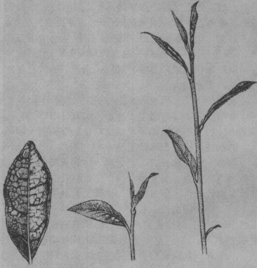 铁观音种 植株灌木型, 分枝部位低, 枝梢稀疏。中叶类,叶片呈水平着生, 叶长8.2~9.7厘米,宽4.0~4.4厘米,呈椭圆形。叶片平展, 叶厚质脆, 叶面隆起, 叶色浓绿发亮。春茶萌发中生偏晚。嫩梢芽叶肥壮,一芽三叶长7.6~10.3厘米, 重0.42~0.79克,色带紫红。10月下旬前后停止生长, 全年生长期约220天左右。花型较小,花萼5片,花瓣6~8片,柱头3裂,花丝数151~257枚,适应性差,抗逆能力弱。鲜叶多酚类含量18.69%,粗蛋白质22.49%,水浸出物45.03%。制成乌龙茶,条索肥壮圆结, 色泽乌润具鲜红点, 滋味醇厚甜鲜, 香气清芳高强, 水色金黄, 叶底肥厚, 软而带润, 品质极优。具有特殊香气, 常以“观音韵”区别于其他乌龙茶, 是目前适制乌龙茶的最佳良种。制红、绿茶品质一般,产量较低。生产上均采用短穗扦插或压条繁殖,但成活率低,管理要求精细, 适于乌龙茶区推广种植。 |