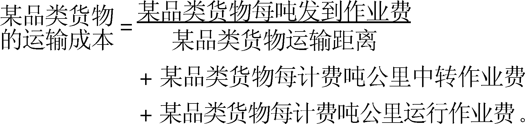 运送条件相近的每类货物每计费吨公里的运输成本。现行铁路主要货物分为煤、焦炭、石油、钢铁、金属矿石、非金属矿石、矿物性建筑材料、水泥、木材、化肥及农药、粮食、棉花、盐和其他14个品类。其计算方法为: