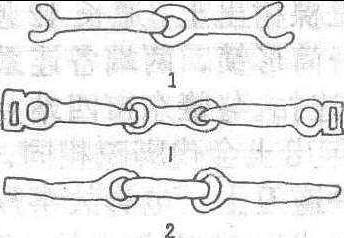 | 释义 | 铁马衔渤海马具。俗称马嚼子,即衔在马口中的铁具,它起勒马的作用。1979年在吉林省永吉县乌拉街乡杨屯大海猛出土。计2件。皆藏吉林市博物馆。有Ⅰ式:两节,中间两环相扣,两端环皆呈开口状。出土时两端环口穿在镳的方形孔眼内,有Ⅱ式,三节,节与节之间圆环相扣,两端圆环扣外各有一长方形孔,出土时,镳套在两端环扣内(见图)。