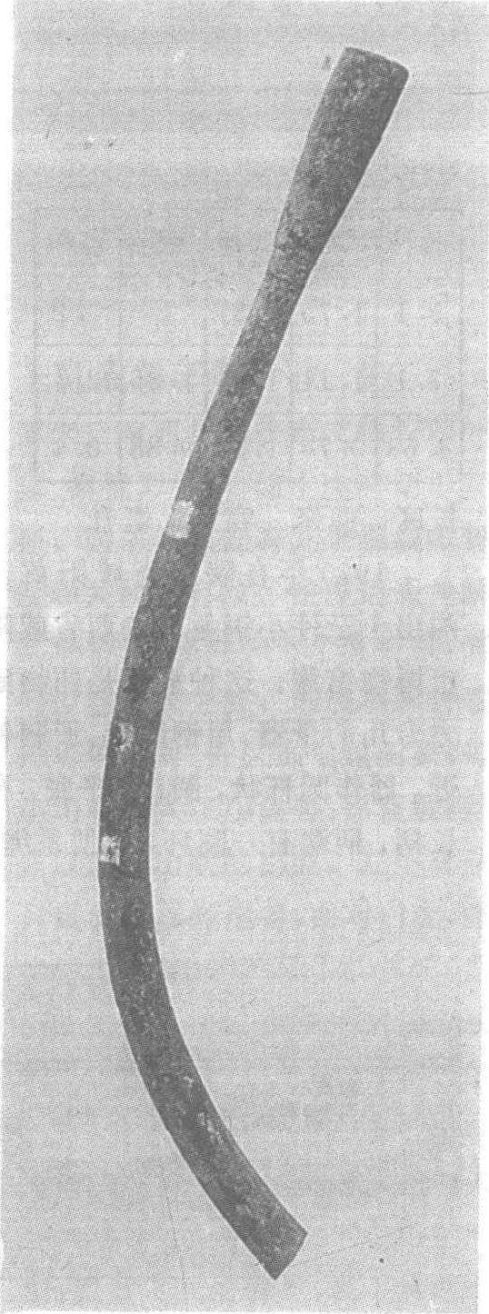 | 释义 | 铜吴钩秦。通长66厘米,刃宽3.2厘米。1975年陕西省临潼县秦始皇陵东侧一号兵马俑坑出土。陕西省博物馆藏。此器两刃对开如剑,向一侧弯曲,齐头无锋。下有粗柄,无格。其形状特异,前所未见。不过,这种实心弯曲的青铜武器,因为两面有刃,既可推,又可钩,无论是紧身护卫或冲锋,均可使用,故应为古代战争中的一种短兵器。历代诗人把吴钩作为兵器的代称,如唐李贺“男儿何不带吴钩,收取关上五十州。”宋辛弃疾“把吴钩看了,栏干拍遍,无人会,登临意。”吴钩虽久负盛名,但只能从文献和诗句中想象它的形状,而这件吴钩的出土,使文献记载得到印证。