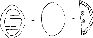 汉代装饰 物。1983年在吉林省永吉县乌拉街乡学古村汉墓出土。计10件。现藏永吉县文物管理所。红铜质地,范铸。正面呈椭圆形,侧面呈半卵形,背面内凹,中间有两条柱状横鼻。通长1.4—1.7、宽1.3—1.8厘米。是汉代北方少数民族的遗物,其制造或使用的年代,当在西汉末至东汉初。