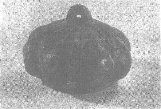 北朝。通高3.8厘米,底径3.8厘米。重487.5克。北京故宫博物院藏。秤砣作八棱瓜形,上有清晰的瓜叶状纹饰,顶部有圆形钮,底部有圆平足。北京中国历史博物馆藏有五枚与此形制相似大小不一的铜秤砣。