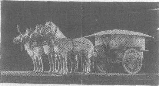 | 释义 | 铜车马秦。通长328.4厘米,高104.2厘米,轮距99.8厘米。1980年陕西省临潼县秦始皇陵陪葬坑出土。陕西省秦始皇兵马俑博物馆藏。此车为单辕双轮,一衡二轭,四马驾驭。舆呈“凸”字形,上有车盖,四周有彩绘栏板,分前后室。前室是驾御处,身穿交襟长袍,腰间束带,左侧佩剑的御者跪坐其间。后室四面围有高轖,顶部隆起椭圆形车盖。盖上原饰织物顶罩。轖前面及两侧设有可推拉的镂空菱花纹窗板,谓之“推户”。轖后有单扇门扉,可启闭。室内篷顶彩绘朵云纹,前设轼,地有茵,显然是乘坐之舆,古称“安车”。四匹骏马,排列整齐,中间两匹颈上驾轭,是为服马,两侧为骖马。马体健壮,腰细膀阔,肌肉隆起,仰首竖耳,是经过训练的优良骏马。车舆及马饰错金嵌银,镂花彩绘。整个铜车马造型规整,图案装饰华丽,显示了当时工匠们高超的艺术造诣。从出土位置和形制结构来看,显然是秦始皇的随葬品。秦陵的修建,从秦王政即位(公元前247年)就开始了,但大规模的修筑工程是在统一六国后的十年(前221—前210年)间进行的。铜车马的制作年代,理应属于此一时期。我国过去发现的古代单辕车,大都是木制的,出土时都已朽毁,仅余残迹和铜质构件,因而研究单辕车的形制结构和马的系驾方法,一直存在一定的困难。这件铜车马和铜御官俑,依比例虽然只相当于真车、真马和真人的1/2大小,但由于铜车马处处仿照真车马制作,细微末节亦酷似真车马,同时结构完整,鞁挽具齐全,这就为研究秦始皇时期的宫廷舆服制度和单辕车的系驾方法提供了较为确切的实物例证。铜车马的铸造组装充分体现了秦始皇时代冶金铸造业较高的工艺水平,也是研究这一时期冶金铸造史的宝贵资料。