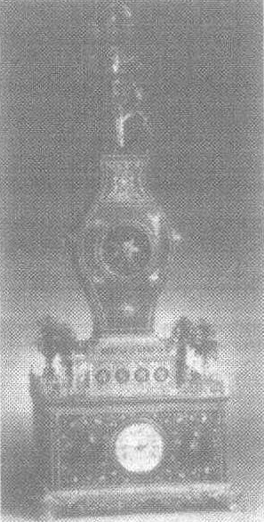 | 释义 | 铜镀金珐琅瓶式开花变字转花钟清代宫内计时仪器,亦为宫内陈设品。钟高83厘米,长29.5厘米,宽21.5厘米。乾隆年间广东工匠制造,然后进呈内廷。此钟外壳铜镀金錾花,底座四面嵌缠枝莲纹饰的烧蓝板。钟体正面安装白瓷钟盘,左右有料石转花。座上四角有四瓶转花,中央是一只大型烧蓝瓶,瓶有双蝙蝠耳,腹部有螺旋形转花,瓶口插一束料石莲花,花上立一只蝴蝶。钟体内系传动装置,上紧发条,乐声即响,各部位的转花同时转动。插于瓶口的莲花一张一合,花上的蝴蝶展开双翅,底座上方亦不断现出 “喜报长春”、“福与天齐”、“福禄万年”、“太平其乐”等吉祥文字。此钟造型端庄,色彩艳丽。作为主要装饰的烧蓝亦具广东特色。