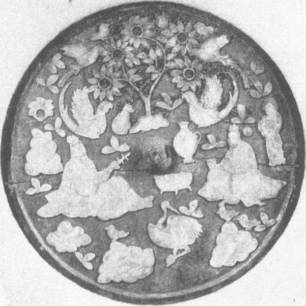 花鸟人物螺钿镜 1955年河南洛阳出土 (唐) 铜镜古代铜制照面用具。多圆形,正面磨光,背面铸花纹或铭文,是认识和研究古代社会的实物资料。中国最早的铜镜发现于齐家文化,距今约4000年。历经商周至明清,长期流行。近代为玻璃镜代替。 铜镜古代照面的用具,亦称铜鉴。一般作圆形,正面磨光发亮,背面常铸花纹。目前我国发现最早的铜镜属殷商时代。战国时已很盛行,制作轻薄精巧,纽较小,花纹多作几何形图案。秦代铜镜花纹有分离式三螭三禽纹、缠绕式三禽三螭纹、细地四兽纹、螭凤纹、飞仙飞龙纹、缠绕式四螭纹、方胜相连纹等纹式。汉代铜镜渐转厚重,纽多作半球形,纹饰更趋复杂,质地更精,出现了鎏金涂银镜,纯银镜及铁镜。独特的是,汉镜多有铭文,一般是七言或三言,最常见者有:“尚方作镜大毋伤,巧工刻之成文章,左龙右虎辟不羊,朱雀玄武顺阴阳,子孙备位居中央,长保二亲乐富昌”;“尚方作镜真大好,上有仙人不知老,渴饮玉泉饥食枣, 浮游天下遨四海, 寿如金石国之保”。放置铜镜 一般有镜架。沂南汉墓石刻上所示镜台,约半人高,中有长方盘,可置脂粉盒等,上为镜托,下有台座,十分轻巧。侍人一手可举起,自由搬动。自东汉中期至魏晋,出现了浮雕的画像镜,极为精美。唐代制作精工,平脱镜、螺钿镜更加富丽。纹饰有人物故事、花蝶、鸟兽等。镜的形状,圆形之外,尚有菱花形及方形等多种。宋元出现有柄可执的铜镜。清代以后逐渐被玻璃镜所取代。 铜镜满族打击乐器。因其铜质且古时用于照面而名。殷商时期已有,沿袭使用至清代。满族主要用于萨满祭祀跳神舞中。将两片大小不等的铜镜缝缀于萨满服上,亦有缀多片铜镜于前胸、后背者,互相撞击发声。 |