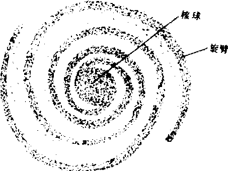 | 释义 | 银河系yinhexi晴朗的夜晚,特别是夏季,可以看到天空中有一条明亮的光带,这就是民间所说的“银河”。用望远镜观测可知,它是由许许多多的恒星组成。只是肉眼无法分辨。这使人想到一定有一个扁圆球形的庞大恒星系统,大量恒星投影到天球上,形成“银河”,这个恒星系统便是银河系。银河系的结构象个透镜,里面包括有恒星、星云、星团、星际物质等。恒星密集的部分组成薄的圆盘,形状象铁饼,叫银盘;圆盘中心突出象个球叫核球。核球中心物质极密称为银核,也是整个银河系的中心。银盘外围接近球形的低密度区域叫银晕,从尺度上看,核球长轴约13000~16000光年,厚约13000光年。恒星十分密集,银盘直径约82000光年,厚约6500光年,中心向边缘逐渐减薄,银河系总质量的85~90%都在这里;银晕直径约16~17万光年,主要由稀疏分布的老年恒星和星际物质组成。银河系的主要范围在10万光年左右,太阳不在系统中而在外围地带,大约离银心距离33000光年,在银河系中心面以北一点,银河系包含了上千亿颗恒星。总质量约1.4×1011太阳质量。从俯视图看银河系(如图),可以看出银河系象旋涡状星系,已经发现有四条螺旋状的旋臂从核球伸出。这是恒星密集的位置,是在恒星绕银河系中心旋转时产生的,这种旋转称作银河系自转。恒星位置不同,旋转速度不同,在太阳附近,银河系的旋转速度是250公里/秒,大约2亿5千万年绕银心转一周。