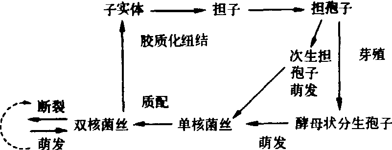 图1 银耳 银耳是异宗结合的四极性菌类。一个银耳的担子能产生4种不同极性的担孢子。担孢子在适宜的条件下,萌发成单核菌丝,相邻的可亲和的单核菌丝相互结合,发生质配,形成有锁状联合的双核菌丝。随着双核菌丝的生长发育,达到生理成熟的双核菌丝就逐渐发育成白毛团,胶质化成银耳原基。原基在良好的营养和适宜的环境条件下,不断生长,展出洁白的耳片。在子实体发育过程中,来自两个亲本的一对极性不同的单倍体核,经核配和减数分裂,产生4个单倍体核,进而发育成4个单核担孢子。至此,一个完整的生活史即告完成。除了上述有性生活史之外,银耳还存在几个无性小循环。其整个生活史见图2。 ![]() 图 2 银耳生活史示意图 在自然条件下野生银耳生长在壳斗科(Fagaceae)、金镂梅科(Hamamelidaceae)等阔叶树的枯木上,但银耳菌丝不能直接利用段木中的纤维素、半纤维素、木质素等复杂的碳源,需要通过一种属于子囊菌的伴生菌(俗称“香灰”)分解成较简单的糖类才能利用。银耳担孢子萌发的最适温度22~25℃,孢子芽殖能力很强,可产生大量的芽孢(分生孢子),芽孢的抗寒能力强,在零下保存4~5年仍能发芽,菌丝体生长温度5~35℃,最适生长温度20~28℃,子实体形成最适温度20~24℃。菌丝体阶段,段木含水量以35~40%为宜,空气相对湿度60~70%,子实体阶段应适当增加水分含量,空气相对湿度需85~95%。此外,还需要充足的氧气,否则耳片不易展开。银耳菌丝体能在黑暗中生长,但子实体的分化和发育需要散射光。 栽培技术 银耳菌种的制备通常分三级进行,母种可从耳木分离得到,也可用“香灰”菌丝和银耳芽孢混合接种制得。用木屑、米糠培养基,经灭菌接入母种,经过35天培养得原种。可由原种接入木屑、米糠培养基,或用圆柱木块和楔形木块作培养基制作栽培种。 用于银耳栽培的树种很多,常用的有麻栎(Quercusacutissima)、栓皮栎 (Quercus variabilis)、枫香(Liquidambar formosana)、日本桤木(Alnus japo-nica)、悬铃木(Platanus acerifolia)等。一般阔叶树都均生产银耳,通常在秋、冬树木停止生长至翌年发芽前砍伐,树木的直径以6~10厘米为宜。耳树伐倒后锯成1~1.2米长的段木,架成井字形,待段木含水量降至35~40%,气温在15℃左右时开始接种。在段木上钻接种穴,接种穴的纵向距离10~12厘米,横向距离4~5厘米,深1~1.5厘米,直径1~1.2厘米。将接好种的段木堆集发菌,上面覆盖塑料薄膜或树叶、树枝,以增加堆内的温度和保持湿度,7~10天翻一次堆,调节水分,约40~50天可见到幼小子实体出现,这时可分散排列,在树荫下、荫棚内,坑道内等适合银耳子实体生长发育的地方,经10天左右,子实体成熟。采收加工成干银耳。另一种栽培方式是代料栽培,利用自然气温春、秋各种一次。用木屑或棉籽壳加上少量米糠和黄豆粉配成培养料,经灭菌、接种、发菌、栽培后长出子实体。 银耳见 “黑木耳”。 银耳Tremella fuciformis营养价值较高的一种胶质食用和药用的真菌。子实体白色,由许多瓣片组成,多皱褶,呈鸡冠状或花瓣状,又称白木耳。半透明,富有胶质,干燥后呈淡黄色。喜温暖、潮湿、通风处生长。多分布在山西、安徽、江苏、浙江、福建、广西、广东、湖南、湖北、陕西、四川、贵州、台湾等省的山林地区,每年7~10月。可在枫杨、栎、柳、杨、合欢、柿、桑、榆、臭椿等的朽木上采到。现已广泛进行人工栽培,四川通江是我国人工