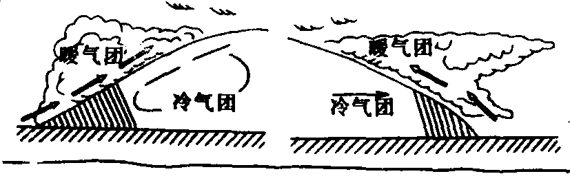 | 释义 | 锋面雨Fengmianyu当冷暖气团相接触,暖湿气流沿冷暖气流的交界斜面滑升,空气冷却达到凝结高度时产生的降雨现象(如图所示),是中高纬地区降水的主要类型。全年均有发生。具有雨时长、雨区广、雨量大的特点。锋面雨与其中的冷、暖锋等各种类型锋面天气紧密相关(参见“锋”条)。中国的春雨、秋雨、梅雨是典型的静止锋或暖锋降水。主要发生在副热带高压北侧的暖湿空气与西风带中的冷空气相汇合的地区。由于副热带高压的位置随季节而进退,所以锋面雨出现的地区,亦有季节性变动。