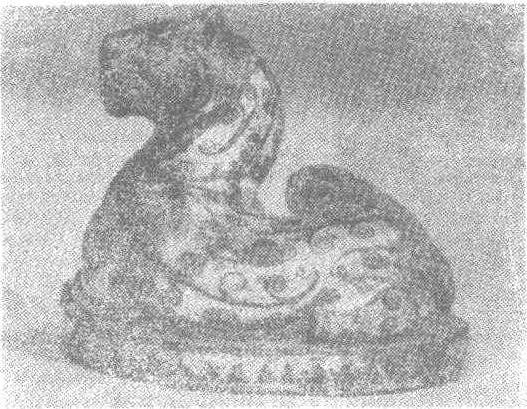 | 释义 | 错金铜豹西汉。通高6.3厘米,直径6厘米。重0.785公斤。1965年河北省献县贯公墓的封土中出土。沧州地区文化局藏。此铜豹昂首挺胸、屈腰团卧于厚0.8厘米,直径6.9厘米的圆形铜座上。通身纹饰均用错金。头部密布“○”纹,胸前饰条纹三层,颈部还有连续的小“○”纹。豹身错树枝状旋涡形纹饰。底座边沿侧面饰锯齿形纹。贯公为西汉景帝子河间献王刘德博士,与毛公(苌)同为汉初名儒。该墓坐落在河北献县境内,距献王墓不足10里,封土尚高达10余米。此铜豹可能是文房所用镇纸工具。