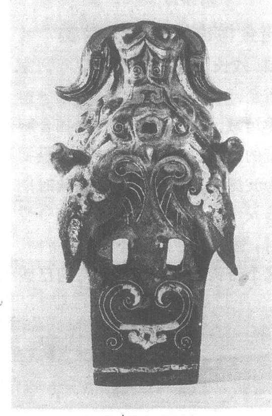 | 释义 | 错金银龙首铜辕头战国。全长22.5厘米,中最宽处12.2厘米。1983年河南省淮阳县马鞍冢出土。河南省文物研究所藏。此器系套在车辕前端的部件。龙首前额有一方形穿孔,脑后颈根部有二个长方形穿孔,用以将辕头固定在车辕上。龙首张口露齿,双目圆睁,颈部正中银错一“”字,面、颈部多处银错卷云纹,鼻、耳处错金,线条流畅,造型生动,是一件珍贵的艺术品。