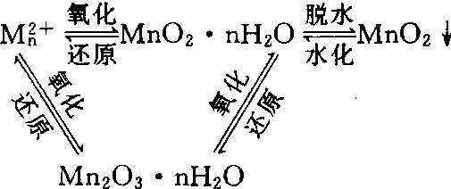 | 释义 | 锰转化transformation of manganese不同形态的锰在土壤中相互转变的过程。锰在土壤中以多种原子价的形态存在,成土母质中火成岩所含的锰是二价的,沉积岩含有的锰是三价和四价的。在成土过程中受成土因素和成土作用的影响,成土母质中的锰便以不同形态进入到土壤中。各种形态的锰在土壤中保持动态的平衡。不同形态的锰可相互转化,转化过程主要受土壤pH值及氧化还原电位(Eh)以及氧化锰的水化作用和脱水作用的影响,可图示如下: