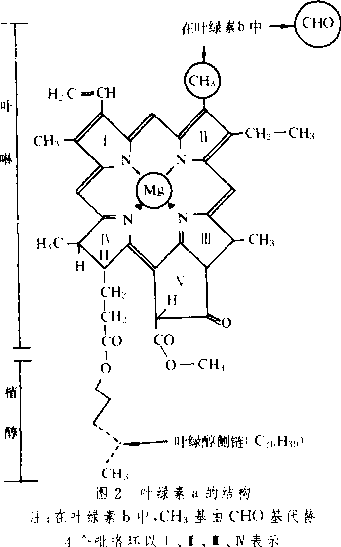 在呼吸作用的糖酵解过程中,主要参加反应的酶如磷酸葡萄糖异构酶、磷酸己糖激酶、磷酸甘油酸激酶、烯醇化酶、丙酮酸激酶等都需要镁作活化剂。缺镁时,这些酶的催化作用减弱,使糖酵解受到影响。 在三羧酸循环过程中,丙酮酸氧化酶、柠檬酸缩合酶、异柠檬酸脱氢酶、α-酮戊二酸脱氢酶、琥珀酸硫激酶等重要酶类,也需要Mg2+作活化剂。因此,镁在三羧酸循环过程中也是不可缺少的。 另外,镁还参与谷氨酰胺合成酶的活化,促进谷氨酸形成谷氨酰胺,可以调节叶绿体内氨的同化。 对光合作用的效应 镁位于叶绿素分子结构的卟啉环的中心(图2)。植物体内镁总量中约15%~20%左右存在于叶绿素中,叶绿素分子量的2.7%为镁。光合作用中光能吸收和转化必须有叶绿素参与。 光合作用的电子传递及光合磷酸化过程都是在叶绿体的类囊体膜上进行的。Mg2+(也包括K+)在光合链中起着维持跨类囊体膜H+梯度的功能,促进光合磷酸化的进行和形成ATP。镁在还原磷酸戊糖(RPP)途径中也起重要作用。许多酶如二磷酸核酮糖(RuBP)羧化酶、果糖-1,6-二磷酸(FBP)酶和景天庚糖-1,7-二磷酸酶的活化需要Mg2+。所以Mg2+促进CO2的固定和同化。 叶绿体间质中RuBP羧化酶的最适pH为碱性,在黑暗中不具备该酶作用的适宜环境,故呈钝化态;在光照条件下,发生光合电子传递,同时叶绿体间质中的H+向类囊体转移,Mg2+则从类囊体释放到间质中,使间质中pH碱化。黑暗条件下叶绿体间质的pH约为7.0,照光后增高至8.0或更高,且间质中Mg 2+浓度也增高,形成了RuBP羧化酶作用的最适条件,使其活化,从而促进了CO2的固定和同化。