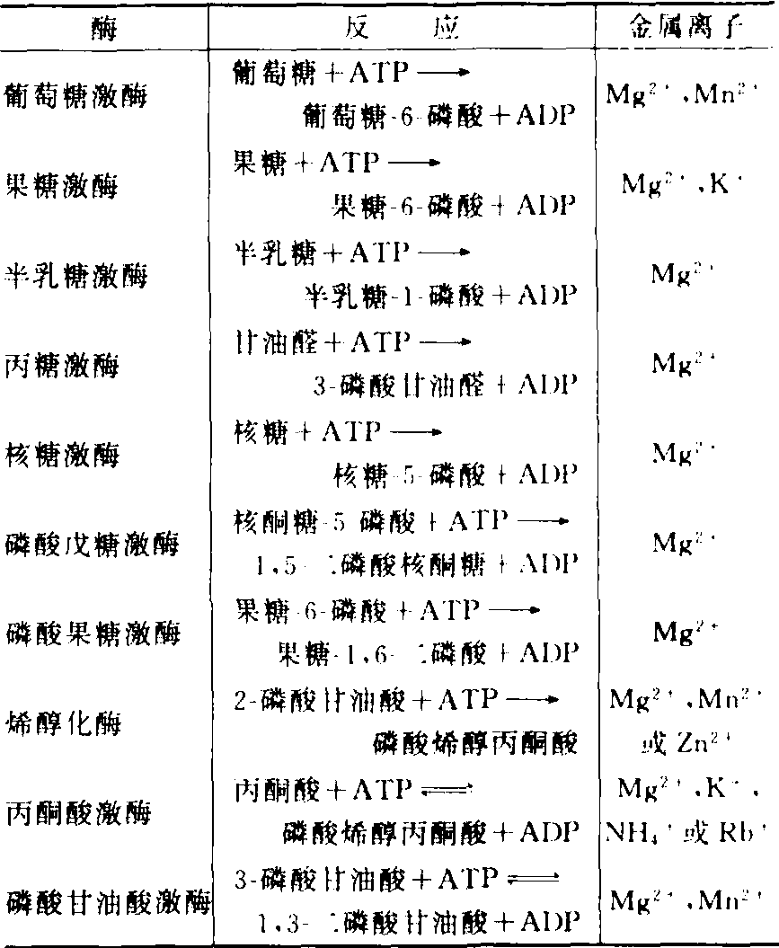 表1 Mg2+作为某些酶的活化剂 在碳水化合物代谢中的作用