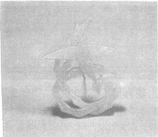 | 释义 | 镂雕竹枝玉饰北宋。长6厘米,宽5厘米。1974年北京市房山县长沟峪石椁墓出土。北京首都博物馆藏。玉料青色。玉工从所见的残竹得到启发,独出心裁地将玉饰设计成一段残竹的盘曲状。尽管玉料质地坚硬,却真实地表现出了这种植物的柔韧性,与真正的竹子极为相似。一节间还琢饰出三片竹叶。竹子深受人们喜爱,用艺术形式大量表现这一题材出现于北宋。这件玉竹是迄今所发现最早的一件。