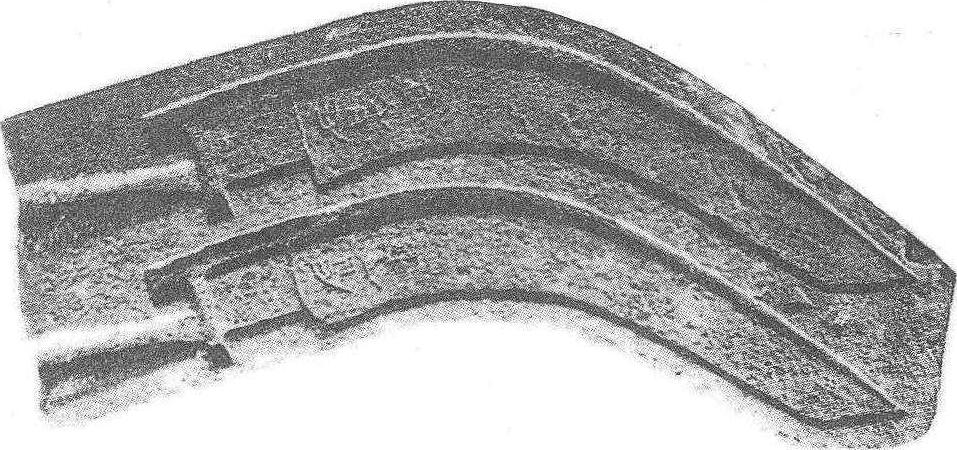 图4 河北兴隆出土战国铁镰范 并不太大,一直沿用至今。但由于不同的作业需要,也出现几种特殊用途的镰刀。如汉代发明一种专门用来收割禾草和撒播作物的䥽镰。 䥽镰是种两边有刃的大镰刀,双手执握用以砍削禾秸。四川、湖北汉墓中都出土过䥽镰,四川出土的东汉画像砖上也有使用䥽镰的画面。 《说文解字》:“䥽,两刃,木柄,可以刈草。”王祯《农书·铚艾门》亦说:“䥽,两刃刈也。 其刃长余二尺,阔可三寸,横插长木柄内,牢以逆楔。农人两手执之,遇草莱或麦禾等稼,折腰展臂,匝地芟之,柄头仍用掠草杖,以聚所芟之物,使易收束。”至宋元时期又发明一种收割工具叫推镰。虽也叫镰,但已与普通镰刀大不相同,而是把长条形铁刀装在带有两个轮子的架上,后有长柄,使用时奋力向前推去,可铲割作物。这已是一种收割机械。 |