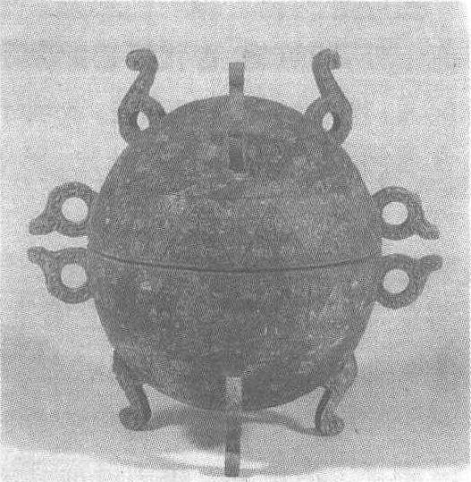 | 释义 | 镶嵌几何纹铜敦战国。通高25.4厘米,腹径18.8厘米。重4.12公斤。上海博物馆藏。敦是春秋晚期新出现的食器,用以盛放黍稷饭食,器形如上下对称的卵球体,上有三钮,下有三足,并各有两个环耳,器与盖可分置使用。此敦体呈球形,所饰全用几何纹,以三角形交错和长方块堆叠,并相间地镶嵌各种复杂的线条,使纹饰呈现绚丽变异的效果。战国时还有用细铜丝大面积盘嵌,细部用银丝镶嵌,中有彩漆之类的填嵌物。规律地露底的纹饰。这是当时全新的高水准的青铜镶嵌工艺,由于费工很大,制作不易,故产品甚少。
