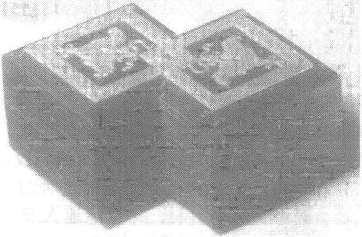 | 释义 | 镶竹丝贴黄方胜盒清代宫中存放古玩器物的装饰盒,也作为室内多宝格上的陈设品。盒通盖高4.9厘米,口径12.8厘米×8.4厘米,底径宽10.5厘米。方胜,即由两个菱形压角相叠组成的图案或花样,寓 “同心” 之意,故亦名 “同心方胜” 或“同心彩结”,是明清工艺美术品常采用的题材之一。贴黄即是将竹黄贴在器胎上的一种工艺。这件方胜盒在底、盖部镶贴棕竹竹丝,其色如秋茄。盖顶为回纹、卷草纹边框,框内贴鹅黄色玉磬形佩。这件镶竹丝贴黄方胜盒造型和纹饰配合得当,包镶精妙,实为清代嵌镶竹制工艺珍品,不可多得。