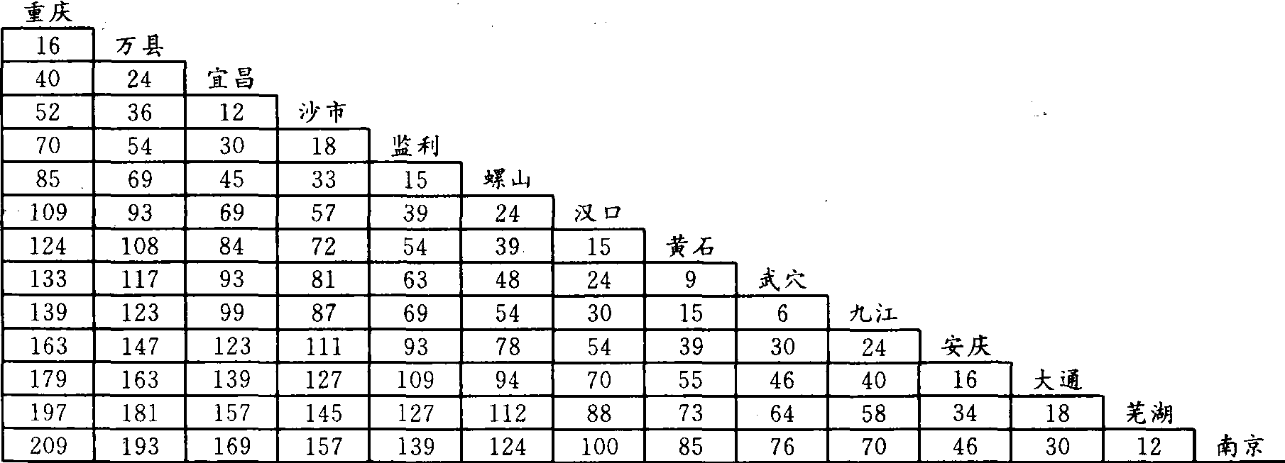 每年夏秋,长江都要有多次洪峰自川江流向东海,洪峰下泄通过沿江主要城市的平均进程所需的时间大体上如下表(小时):